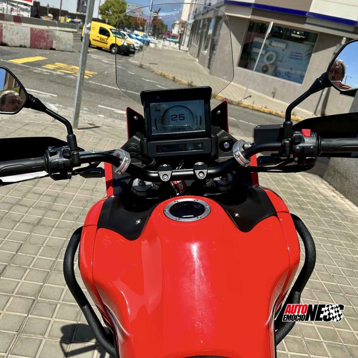 ¿UNA HONDA AFRICA TWIN 500?. Impresionante parecido a la carrocería de la Africa 1100 de ultima generación e igual similitud a su excelente motorización con la 500 X de la marca japonesa. Aunque las ventajas para la Rieju son muchísimas, doble deposito de combustible bien distribuidos (uno delante y otro detrás) que le aportan la autonomía mas grande que puedas encontrar en una moto a la venta en el territorio europeo, mayor a 1.000 kilómetros, de serie aporta cubre cárter, defensas bajas, defensas altas, cubre puños rígidos, llantas de radio de 21 y 18 pulgadas sin cámaras, Pantalla Display digital de 7? Suspensiones de 190 mm de recorrido, regulables en extension, compresión y precarga Avanzado Sistema ABS delantero y trasero. Desconectable para uso OffRoad Altura de asiento ideal para una conducción cómoda y manejable (840 mm). Preinstalacion de cámaras de video delantera y trasera. Apta para conducir con el carnet A2. Equilibrio perfecto entre comodidad y deportividad, tanto de pie como sentado, en carretera de asfalto y terrenos off-road. Podrás financiarla Integra o parcialmente y en unos muy amplios plazos con las mejores tasas del mercado. Recuerda que tenemos la mayor oferta en motos trail de las islas. Consulta, líneas móviles con WhatsApp.
